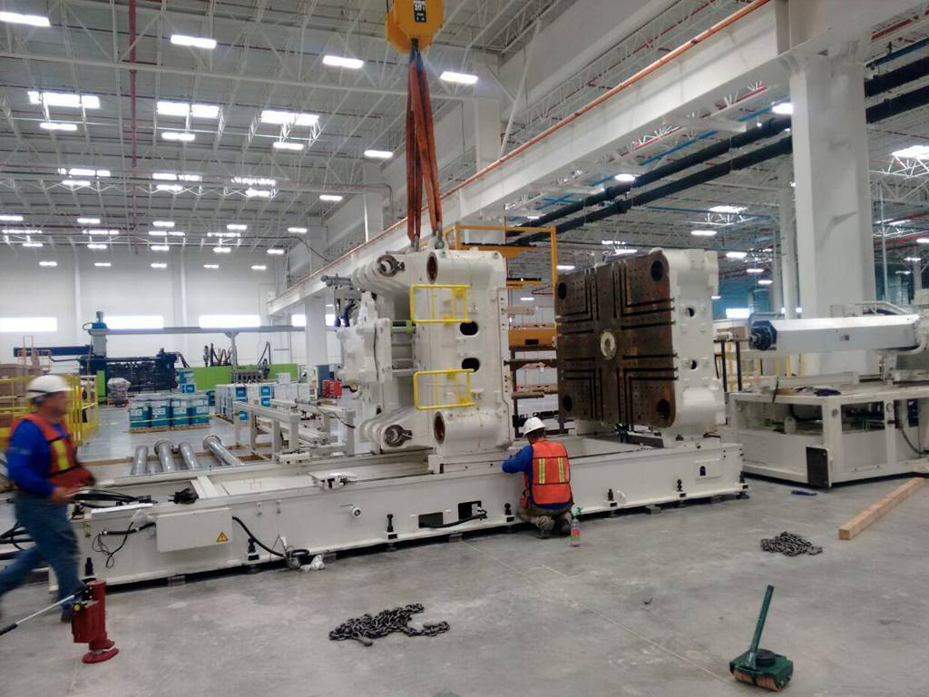 Descarga, desembalaje, posicionamiento y nivelación de una inyectora Engel 1600. Así como la instalación de servicios eléctricos, neumáticos e hidráulicos.